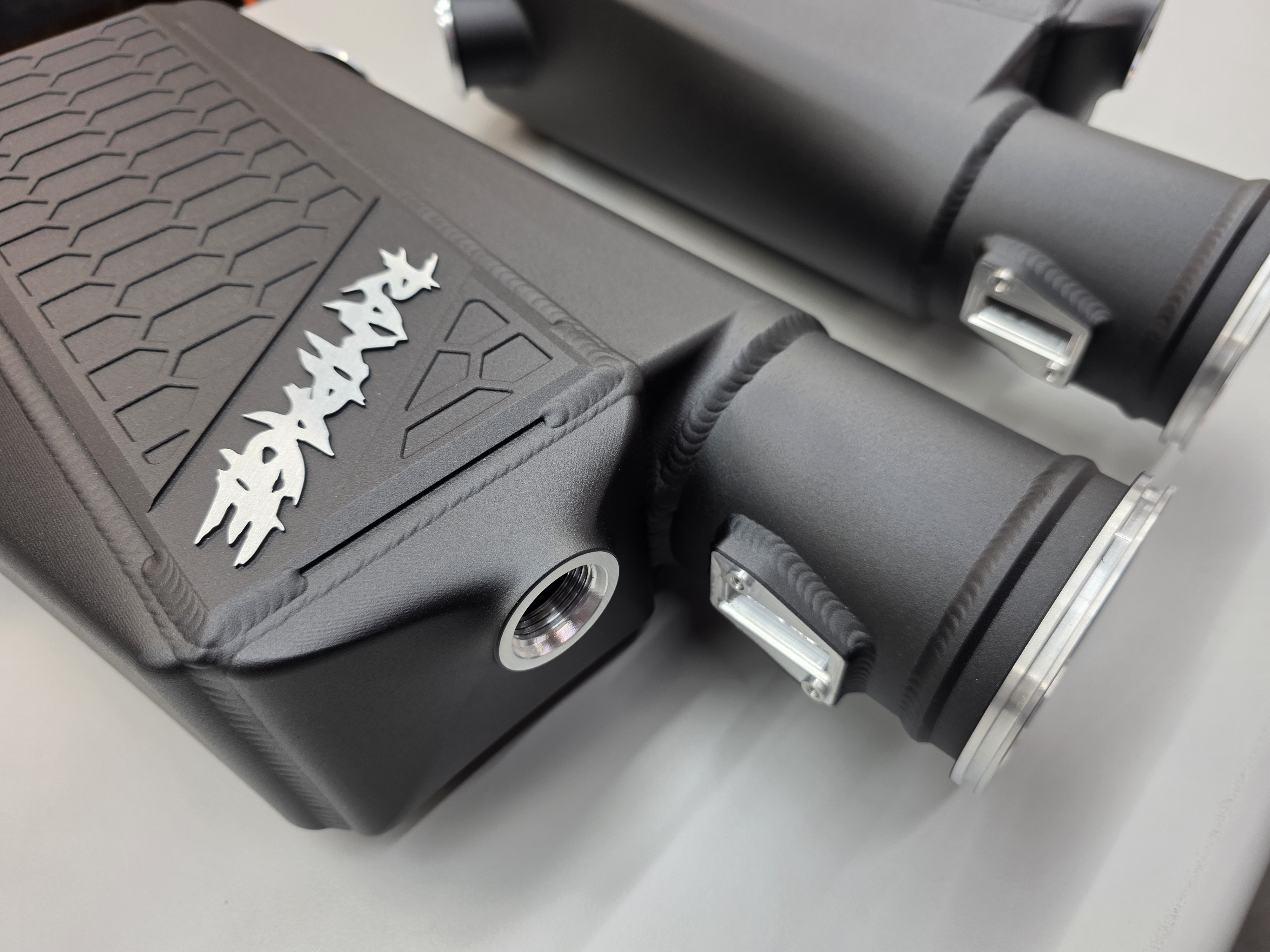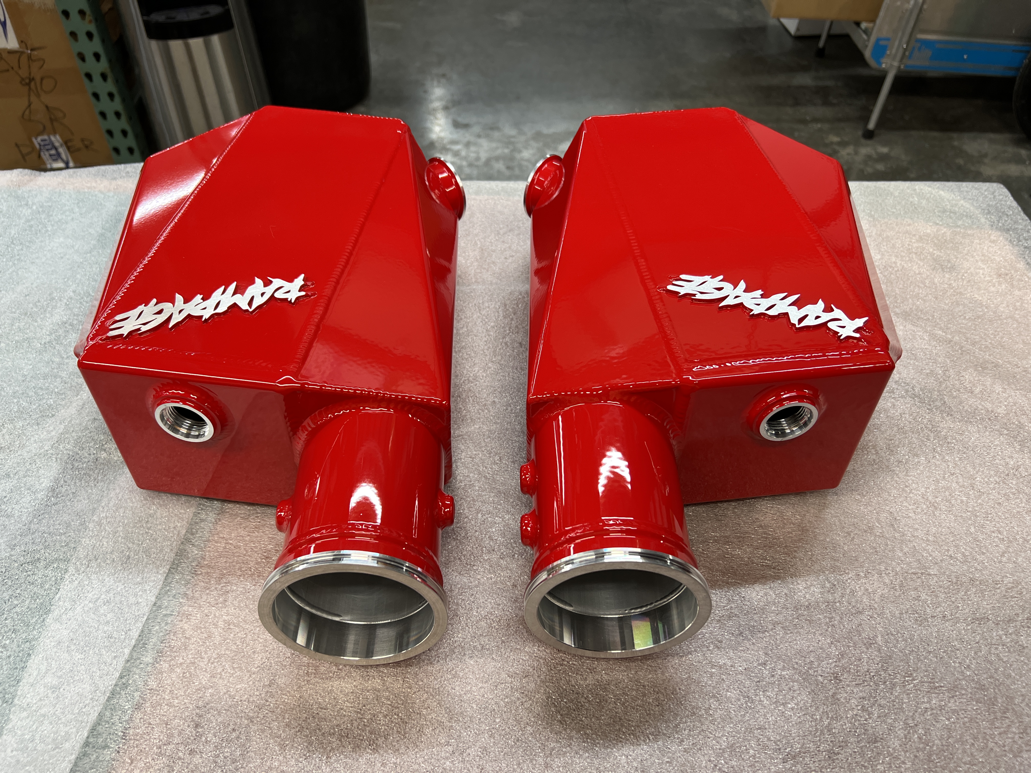 All Intercoolers from Mid 2025 on have been converted to 5-axis CNC Machined end tanks made from Billet 6061 Aluminum. We are also using dual Garrett 1000hp cores for our standard offering.